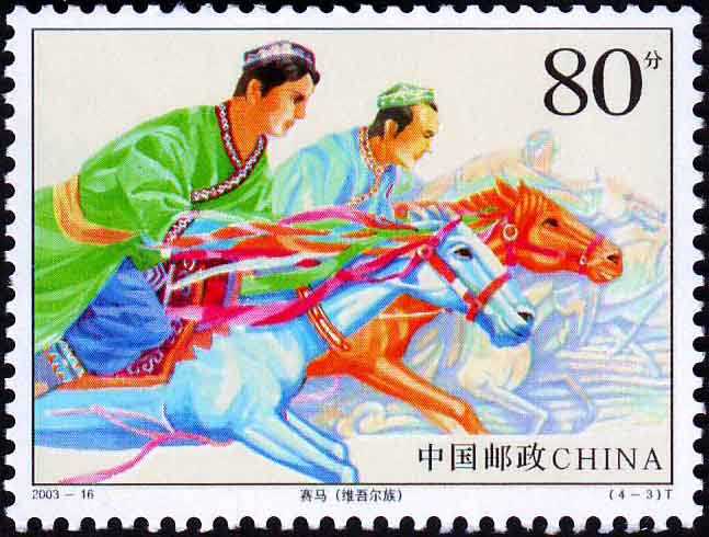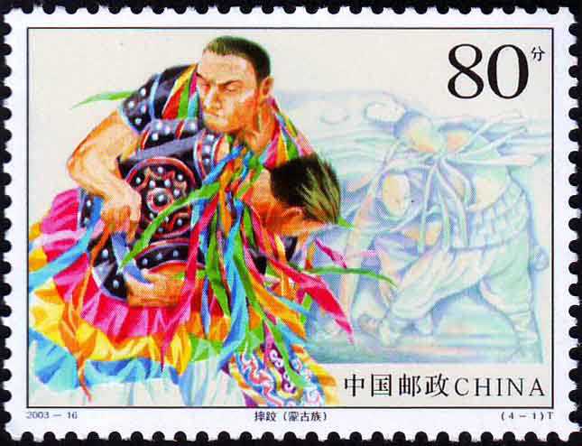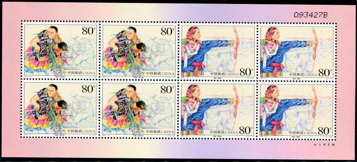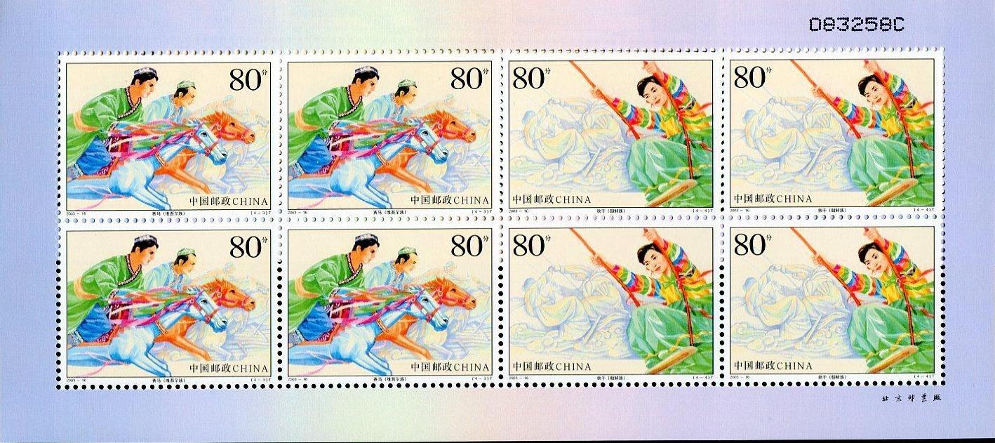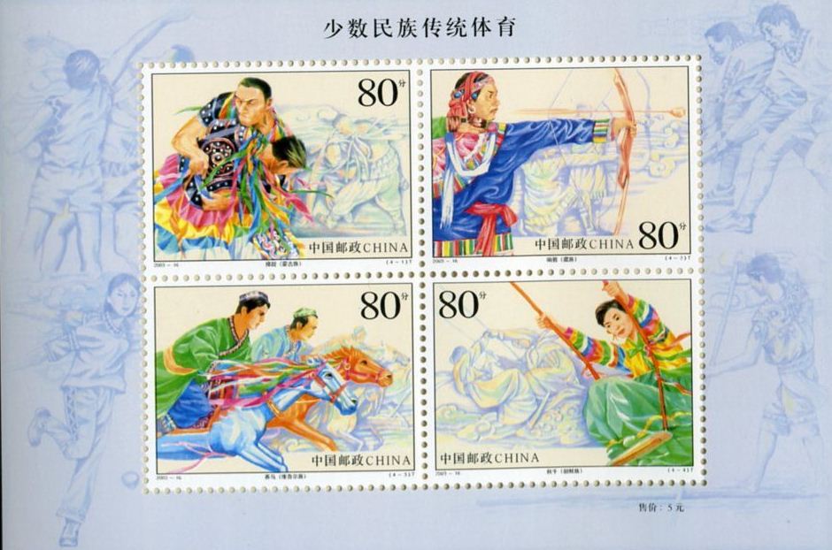 国家邮政局2003年9月5日发行《少数民族传统体育》特种邮票1套4枚,小全张1枚。