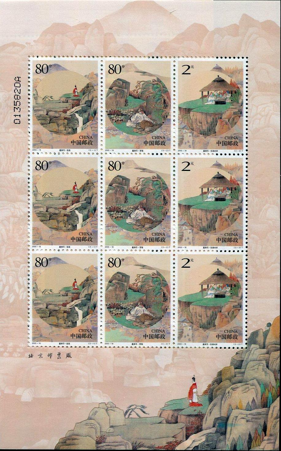 整张枚数:版式一20(4×5)、版式二9枚(3套邮票)(发行100万版)