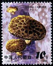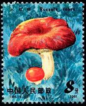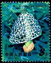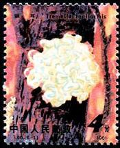 (1) 4分, 银耳, 562.16万枚。 (2) 8分, 竹荪, 1196.16万枚。 (3) 8分, 猴头菌, 1109.66万枚。 (4) 8分, 大红菇, 1142.16万枚。 (5)10分, 香菇, 545.66万枚。 (6)70分, 双孢蘑菇, 158.66万枚。 1981.8.6。影写版。P11.5。31mm×38.5mm。50(10×5)。潘可明。北京邮票厂。