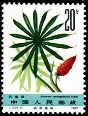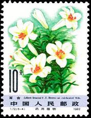 (1) 4分, 萱草, 502.66万枚 (2) 8分, 贝母, 1732.16万枚 (3) 8分, 乌头, 1541.16万枚 (4) 10分, 百合, 554.66万枚 (5) 20分, 天南星, 565.16万枚 (6) 70分, 芍药, 273.16万枚 1982.5.20。影写版。P11.5×11。30×40mm。50(10×5)。 邹建军。北京邮票厂。