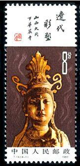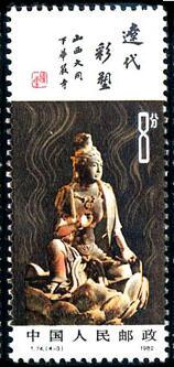 菩萨立像,是华严寺彩塑中最精美、最动人的作品。菩萨头戴玲珑剔透的宝冠,身微向左倾侧,腰胯轻扭,双手当胸合十而立,姿态优美。面容圆浑柔美。细眉修目,眼眸俯视,露齿微笑,表情含蓄娴雅,璎珞满身,轻纱般的帔绕过双臂,垂于足下,飘若风动。菩萨体躯丰腴饱满,遍身彩妆,绚丽多姿,和谐典雅,显示了辽代彩塑所达到的高超的艺术水平。