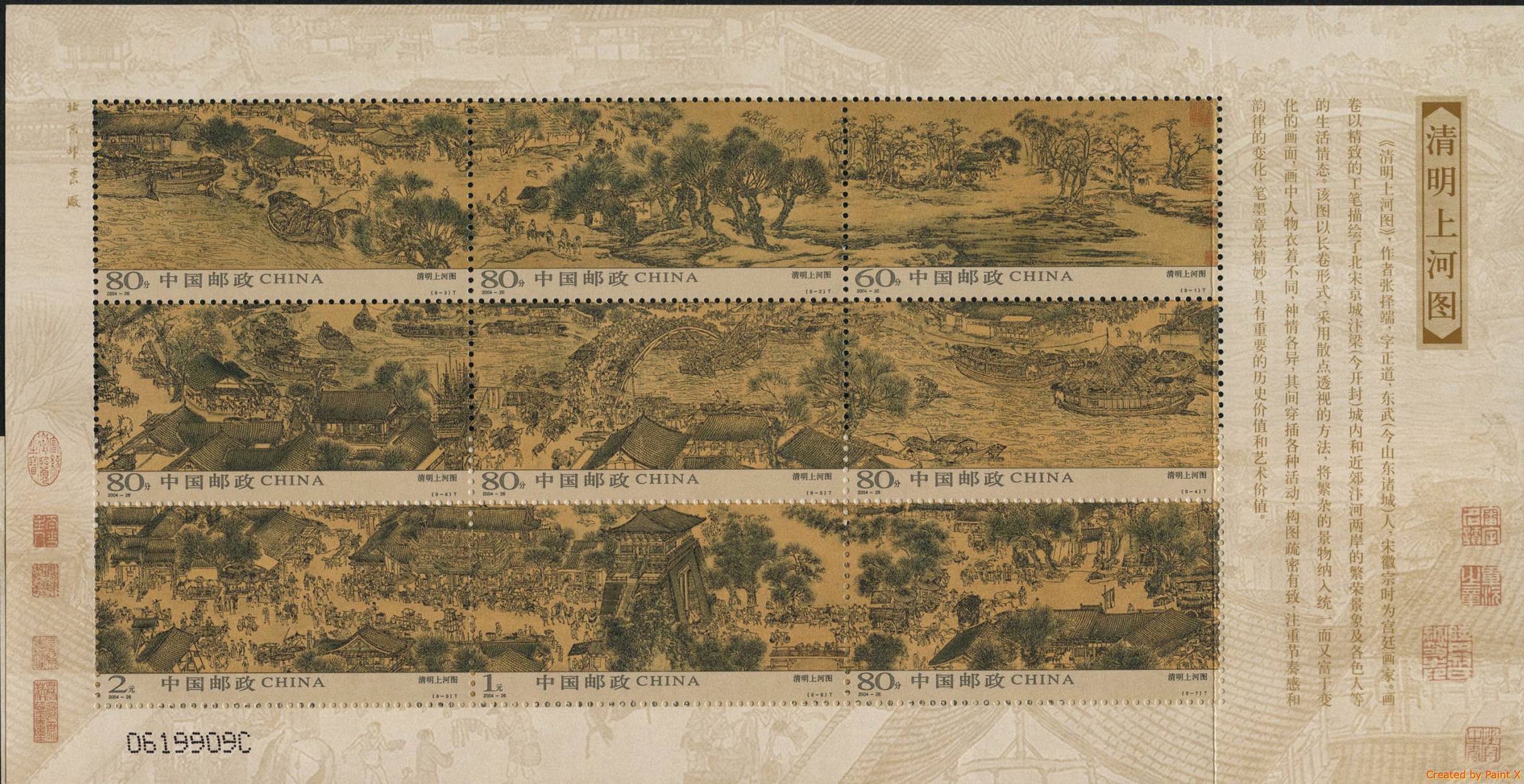 国家邮政局2004年10月18日发行《清明上河图》特种邮票1套9枚。