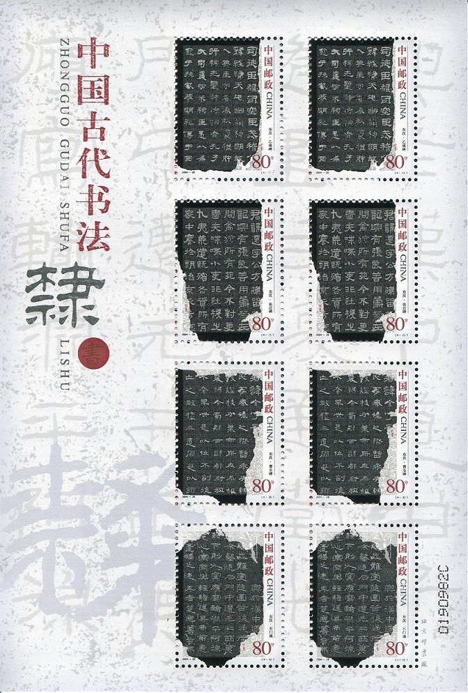 国家邮政局2004年12月5日发行《中国古代书法—隶书》特种邮票1套4枚。