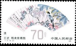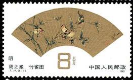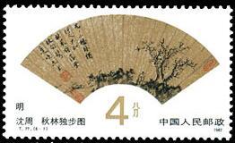 (1) 4分 明·沈周·秋林独步图 555·66万枚 (2) 8分 明·唐寅·枯木寒鸦图 1312·16万枚 (3) 8分 明·周之冕·竹雀图 971·16万枚 (4) 10分 明·陈洪绶、白汉·松下提诗图 514·16万枚 (5) 20分 清·恽寿平·菊花图 621·16万枚 (6) 70分 清·王武·梧禽紫薇图 352·16万枚 1982.7.31。影写版。P11.5。52mm×31mm。40(4×10)。许彦博。北京邮票厂。