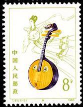 (1) 4分 箜篌 446.16万枚 (2) 8分 阮 972.91万枚 (3) 8分 琴 1052.91万枚 (4)10分 琵琶 480.16万枚 (5)70分 三弦 198.16万枚 1983.1.20。影写版。邓锡清。北京邮票厂。 (3)P11×11.5、40mm×30mm、50(5×10);其余P11.5×11、30mm×40mm、50(10×5)。