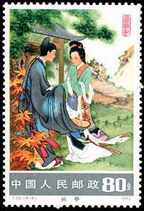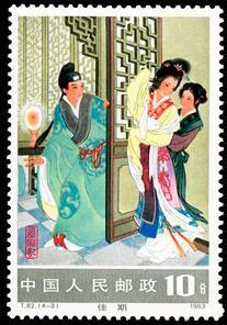 (1) 8分 惊艳 1028.41万枚 (2) 8分 听琴 963.16万枚 (3)10分 佳期 561.16万枚 (4)80分 长亭 293.51万枚 1983.2.21。影写版。P11×11.5。40mm×60mm。25(5×5)。 [A]王叔晖。[D]刘硕仁。北京邮票厂。