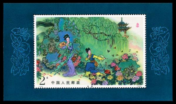 2元,牡丹亭——游园,209.1万枚。 1984.10.30。影写版。[A]戴敦邦。[D]李为。北京邮票厂。 小型张规格:136mm×80mm。 邮票规格:90mm×60mm。