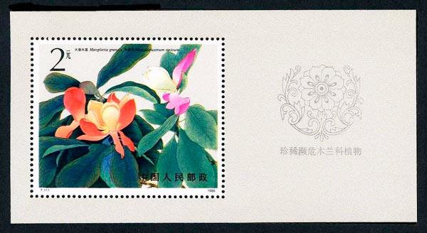 2元,大果木莲与华盖木,420.28万枚。 1986.9.23。影写版。P11.5。赵秀焕。北京邮票厂。 小型张规格:132mm×70mm。 邮票规格:62mm×52mm。