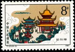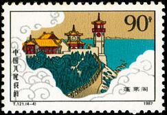 (1) 8分, 黄鹤楼, 1734.15万枚。 (2) 8分, 岳阳楼, 1693.65万枚。 (3)10分, 滕王阁, 929.4万枚。 (4)90分, 蓬莱阁, 652.4万枚。 1987.10.30。影写版。P11。40×27mm。50(5×10)。 周令钊。北京邮票厂。