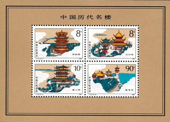 1.16元,中国历代名楼,364.1万枚。 1987.10.30。影写版。P11。[D]周令钊。北京邮票厂。 小全张规格:130mm×93mm。