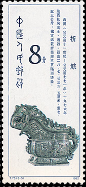 1982年第3届最佳雕刻版邮票1枚《西周青铜器》第5枚《折觥》