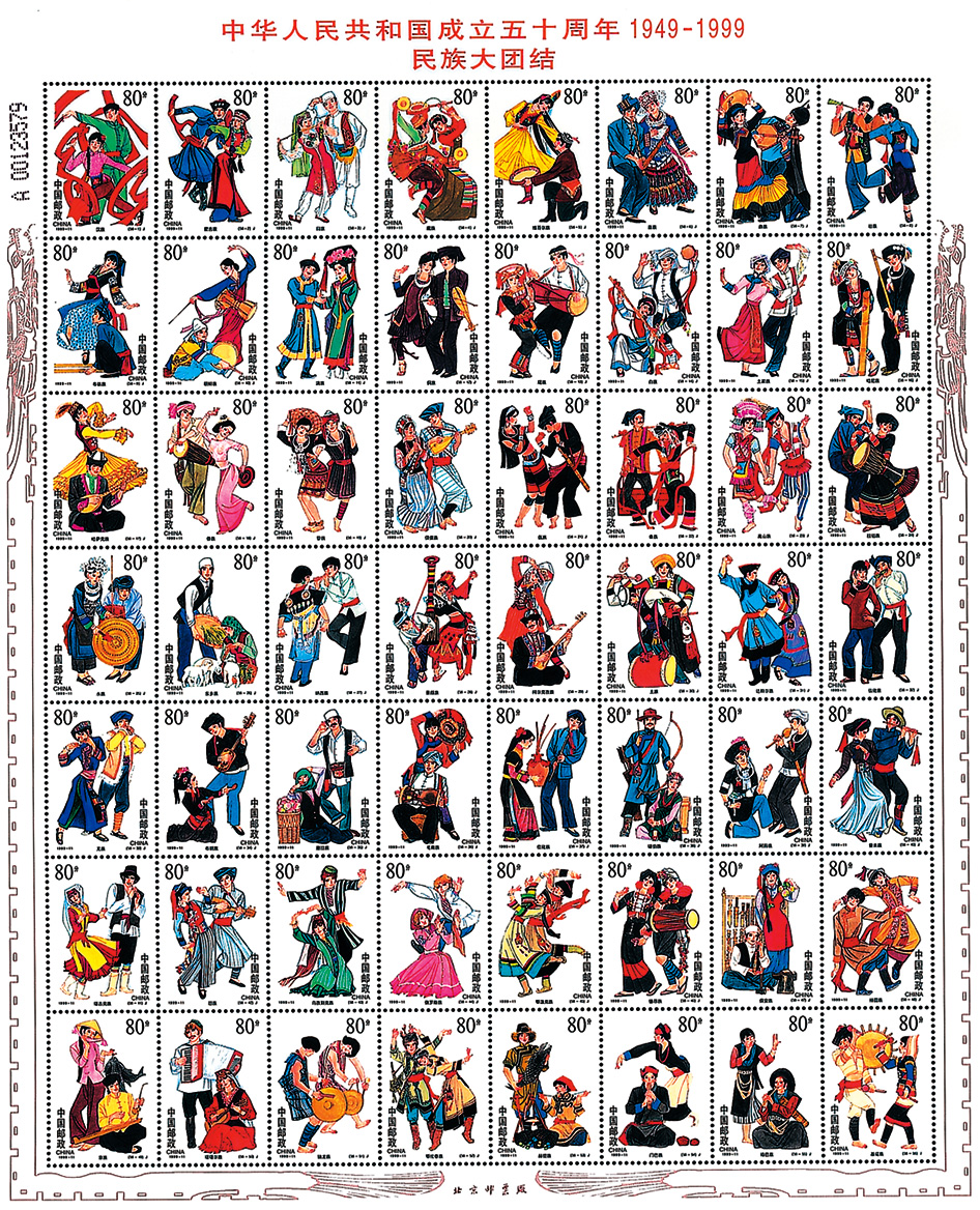 1999年第20届专家奖邮票《中华人民共和国成立五十周年—民族大团结》