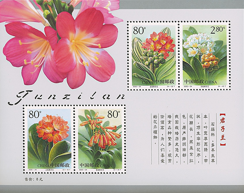 2000年第21届最佳印刷邮票《君子兰》(小全张)