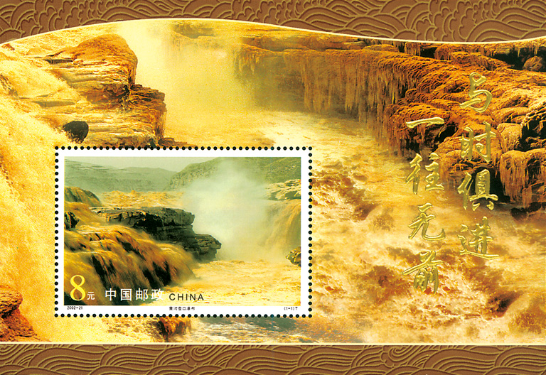2002年第23届最佳邮票《黄河壶口瀑布》(金箔小型张)