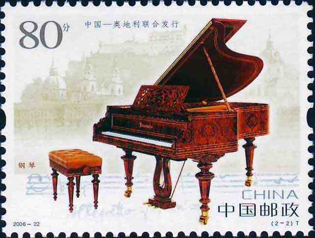 国家邮政局2006年9月26日发行《古琴与钢琴》特种邮票1套2枚(与奥地利联合发行)。