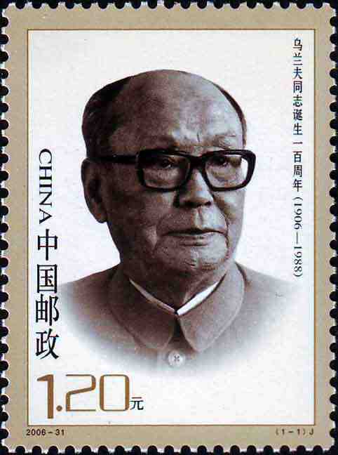 国家邮政局2006年12月23日发行《乌兰夫同志诞生一百周年》纪念邮票1套1枚。