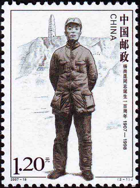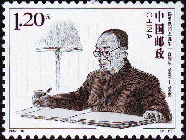 国家邮政局2007年7月5日发行《杨尚昆同志诞生一百周年》纪念邮票1套2枚。