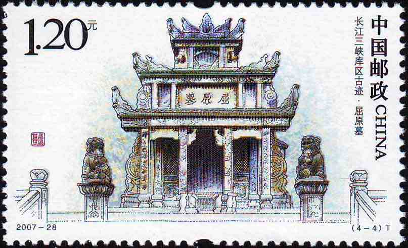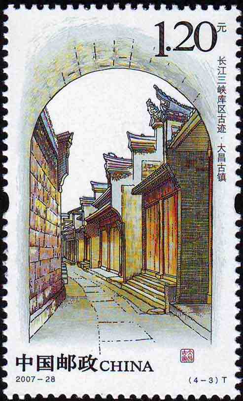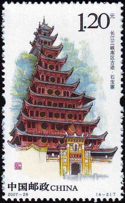 国家邮政局2007年10月13日发行《长江三峡库区古迹》特种邮票1套4枚。