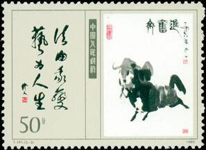 [D](1)叶浅予、(2)李可染、(3)吴作人。北京邮票厂。
