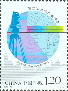 国家邮政局2008年6月25日发行《第二次全国土地调查》纪念邮票1套2枚。