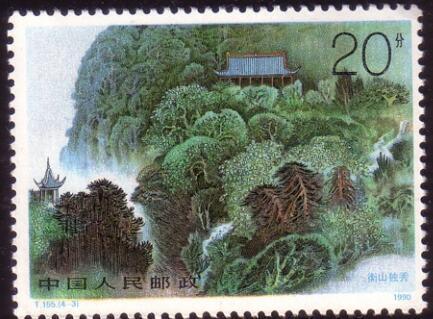 (1) 8分 大庙巍峨 1611.85万枚 (2)10分 南岳如飞 1735.3万枚 (3)20分 衡山独秀 1751.7万枚 (4)50分 祝融雄峰 1616.5万枚 1990.11.5。影雕套印。P11。54mm×40mm。28(4×7)。北京邮票厂。