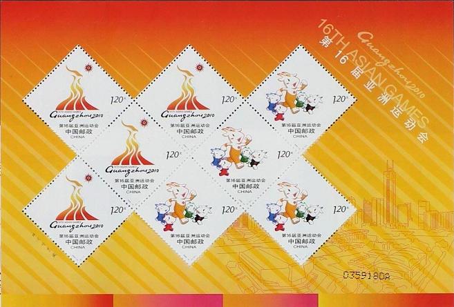 国家邮政局2009年6月30日发行《第16届亚洲运动会》纪念邮票1套2枚。
