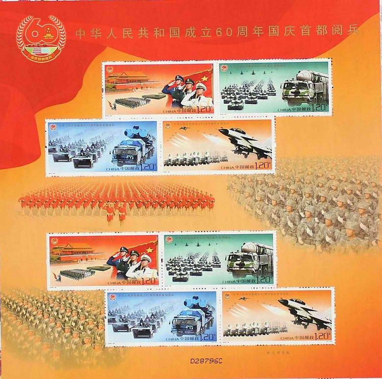 国家邮政局2009年10月1日发行《中华人民共和国成立60周年国庆首都阅兵》纪念邮票1套4枚。