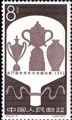 (329)8分,运动员,500万枚。 (330)8分,奖杯,500万枚。 1963.9.10。雕刻版。P11.5。31mm×52mm。50(10×5)。[G]。[D]刘硕仁。[E]孙鸿年、高品璋。[Pr]北京邮票厂