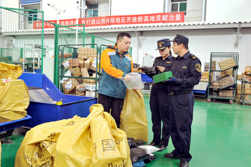 日前,山西省邮政分公司开通了太原至美国芝加哥的国际航空直达邮路。该邮路每周三、周五、周日共3个频次,通过直封、直飞、直达,山西寄达美国全境的国际邮件全程时限将缩短2天以上,有助于更好地推动全省跨境电商业务的快速发展。图为海关和邮政人员共同查验发往美国的邮件。□记者 武亚亮 摄影报道