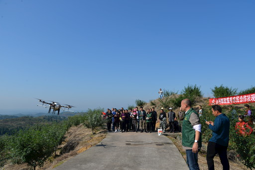 “无人机喷洒农药就是方便,省时省力!”“平坝坡地都得行,喷洒均匀!”10月30日,四川省达州市达川区九岭镇青花椒基地,种植户们看着正在空中喷洒农药的无人机热烈讨论着。这是达州市邮政分公司与邮储银行达州市分行协同向全市农民合作社推出金融、保险、寄递、农村电商等一揽子惠农项目服务的同时,根据当地耕地使用面积较大的情况,推出的无人机施肥、播种、撒农药等特色服务。目前,达州7个县(市、区)均启动了惠农项目,为农户提供邮政综合特色服务,满足合作社生产、农户生活等多种需求。 □肖婉君  摄影报道