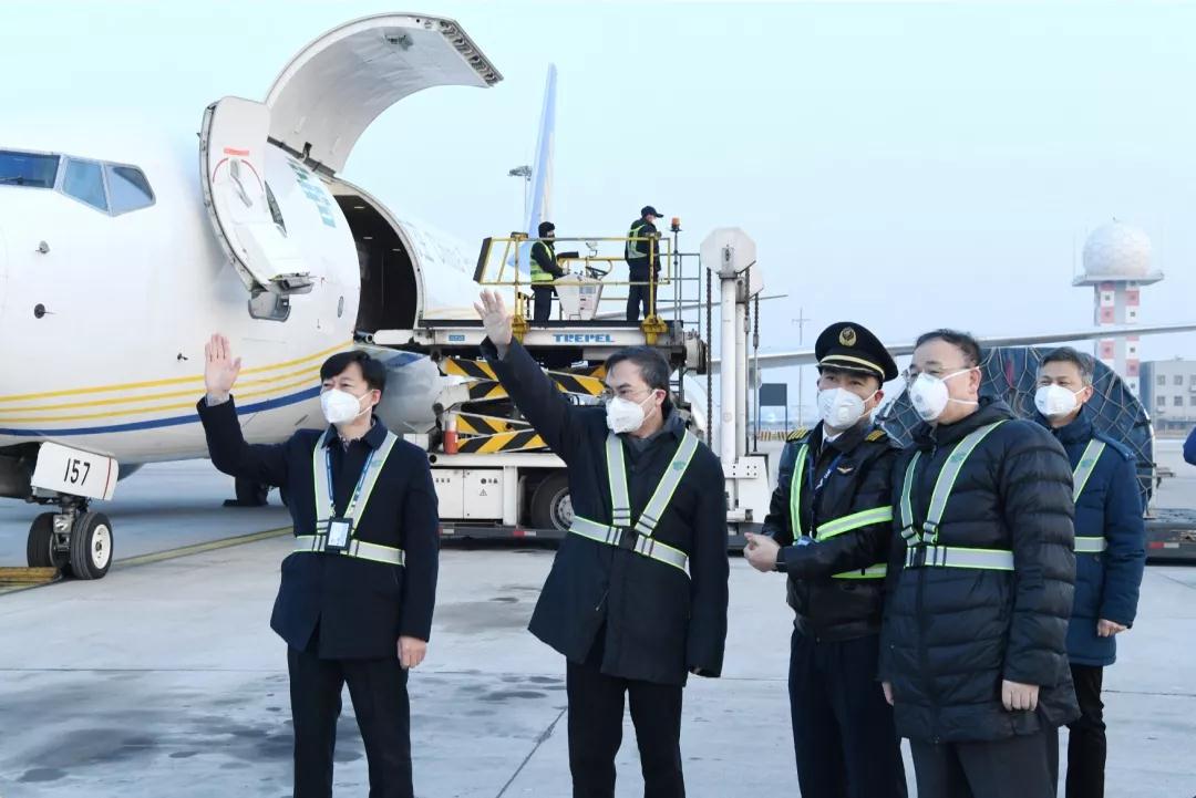来到邮航停机位,马军胜、刘爱力详细了解了邮航疫情防控和邮航执飞防疫物资专机情况,询问邮航飞机使用年限、装载量等,察看了物资装载和飞行准备作业。登上飞机,马军胜、刘爱力关切地询问机组人员的身体状况,叮嘱机组人员一定要做好安全防护,在确保个人安全的前提下,完成好专机执飞任务,确保将防疫物资及时、安全地运达武汉疫情重灾区。看着专机缓缓滑向跑道,马军胜、刘爱力向执飞机组挥手致意,并一直目送专机起飞。