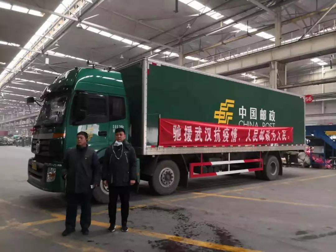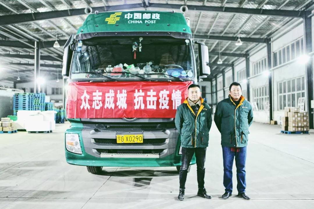 1月27日,连云港市邮政分公司两名驾驶员颜辉、庞振常,从连云港出发,历时14小时,将豪森药业捐赠武汉的第一批物资顺利送达武汉中南医院。