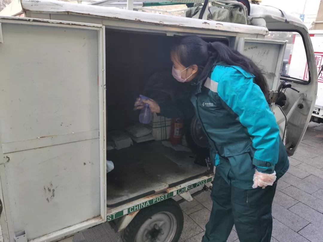 邮政工作人员手中拿着一只装有消毒水的喷壶,细致地为刚刚从青岛邮区中心局转运至投递部的快递包裹消毒,屋内散发着消毒水的气味。这是记者刚刚走进杭州路投递部大门时的所见所感。“晓玉姐,我的这些包裹都消毒了?麻烦再帮我把快递车消消毒吧!”“这边的刚消过毒,你的车停门口?我这就过去。”还没来得及表达来意,记者耳边又传来这样一组对话。特殊时期,在街头还少有行人时,33岁的快递小哥卢顺已经开始了自己一天的忙碌时光。