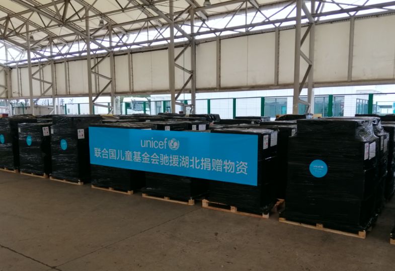 第62班飞往武汉的邮航航班载着联合国儿童基金会的捐赠物资抵达