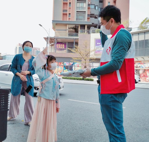 在禅城区泷景花园门口,骆立先将邮件按楼栋号排好顺序,以便迅速查找,然后逐一打电话通知客户取件。三月的岭南已是繁花似锦、春风拂面,不一会儿,他的头上就渗出了细密的汗珠。收到教材,一位身穿汉服的小学生为表达感谢,向骆立敬了一个少先队礼。骆立说这一举动真是暖化了自己的心,再累也值得!