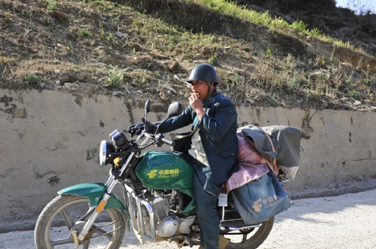 简单吃过中饭,桑南才将邮袋绑在摩托车后座上,弯腰紧了紧鞋带,再跨上磨得泛白的帆布邮包,驱车向大山深处进发。