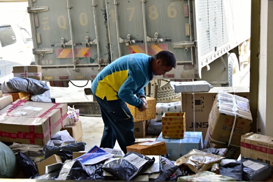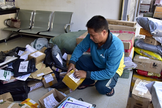 新年第一天,尽管属法定节假日,但从州府六库方向发来的邮车还是如约抵达邮政所。桑南才打开车厢门——又是满满一车包裹!桑南才记得,1987年自己刚到所里上班时,邮车隔天才一班,一个月也就200来份邮件。现在每天两班邮车,一天的邮件量都快到200件了。