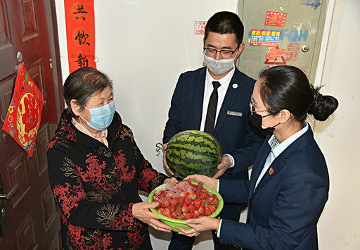 3月19日,甘肃省庆阳市庆城县邮政分公司的青年志愿者为金凤苑小区76岁的王彩琴老人送去新鲜水果。面对疫情,庆城县分公司北区营业所组织志愿者为社区居民,特别是行动不便的老年人提供生活物资义务配送服务,将居民在当地粮蔬生产基地采购的水果、蔬菜、米面油等生活物资送到家中。该服务在减少居民外出风险的同时,极大方便了百姓日常生活。 □李世栋 尚蓉蓉 摄影报道