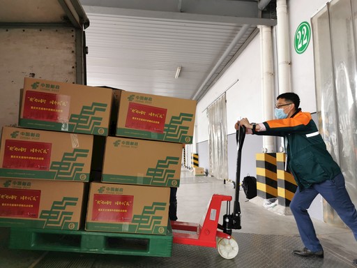 4月13日15:00,重庆市支援海外侨胞防疫物资发送仪式举行,贴有“‘渝’你同行 同舟战‘疫’”的120余箱总价值200万元的“爱心包裹”正式启运。