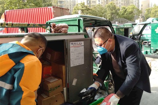 帮扶投递期间,党员佩戴党徽,亮出身份,也赢得了小区物业和社区防控人员的赞扬。“这个时候,也就你们邮政还在坚持,不愧是‘国字号’。”通和易居北苑的门卫每天将门口的一块空地打扫干净,让帮扶人员“摆摊”,有时还帮忙通知居民来领取邮件。
