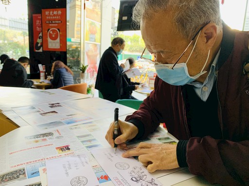 一位集邮爱好者参与成都邮政举办的抗疫明信片书写活动。