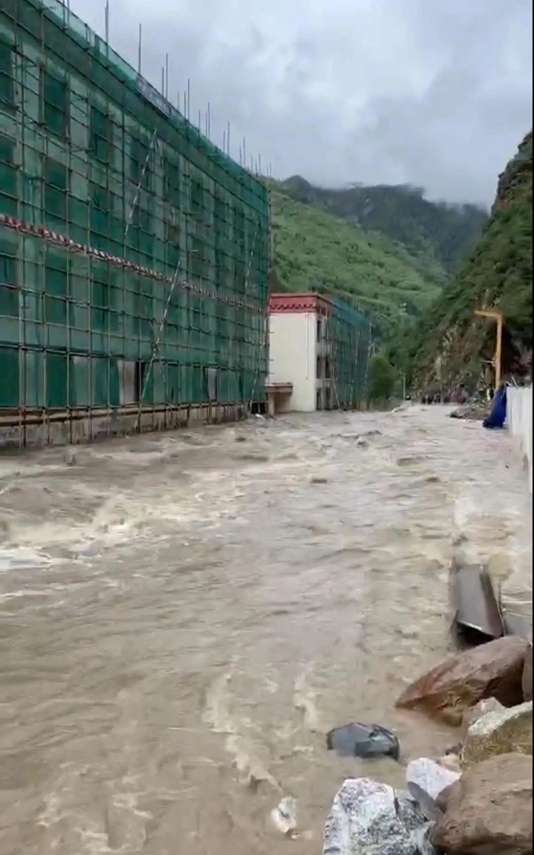 6月28日,四川省阿坝州小金县四姑娘山镇沙坝村一宾馆附近洪水暴涨,公路被冲断损毁、交通阻断、道路积水严重,大小车辆无法通行,给小金至成都二级邮运干线运输作业带来了困难。