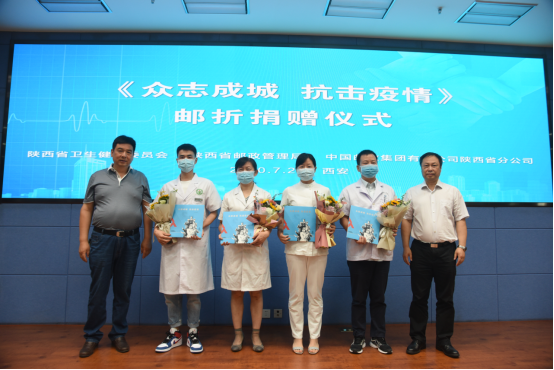 7月2日,由陕西省卫生健康委员会、陕西省邮政管理局、中国邮政集团有限公司陕西省分公司联合主办的《众志成城 抗击疫情》邮折捐赠活动在西安成功举行,陕西1208名抗疫医务人员获赠该纪念邮折。