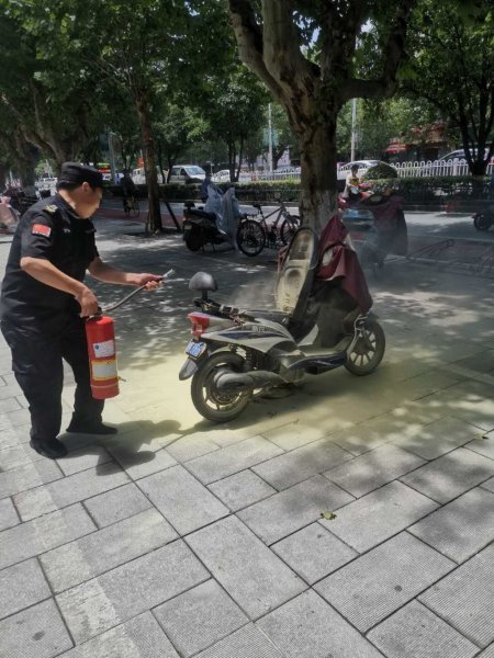 当天中午12:20分,网点正在准备例行消毒,张师傅对网点及周边环境进行日常巡查,第一时间发现了自燃的电动车,并迅速拿出了灭火器上前灭火。“外面的电动车很多,停放的又比较密集,不灭掉等下会烧到其他车子。”张兰洲在保安的岗位上工作了十多年,“邮储银行襄阳市分行营业部经常进行消防安全培训,而且每月进行演练,知道怎么灭火,这点事情没什么怕的。”