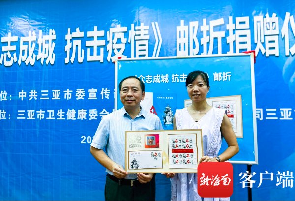7月8日下午,《众志成城 抗击疫情》邮折捐赠仪式在三亚举行。记者 沙晓峰摄