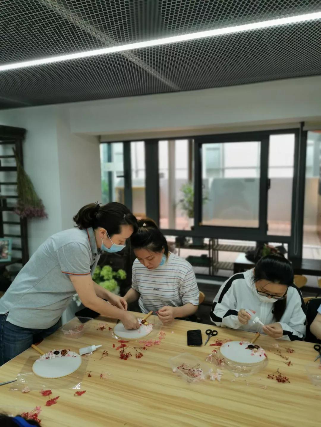 “对,这里的花朵要剪碎一点,做这个要耐心一些。”一位老师正在教海通期货股份有限公司的10余位员工制作团扇,这是活动中心与该公司的团建项目。为实现项目合作多元化,活动中心主动和周边企业共建,从以承接活动为主向枢纽型平台良性发展,以枢纽型阵地腾笼换鸟,引入优质的工作室资源,不断辐射附近楼宇白领,吸引白领成为常驻粉丝,更加高效的推进基层文化服务。