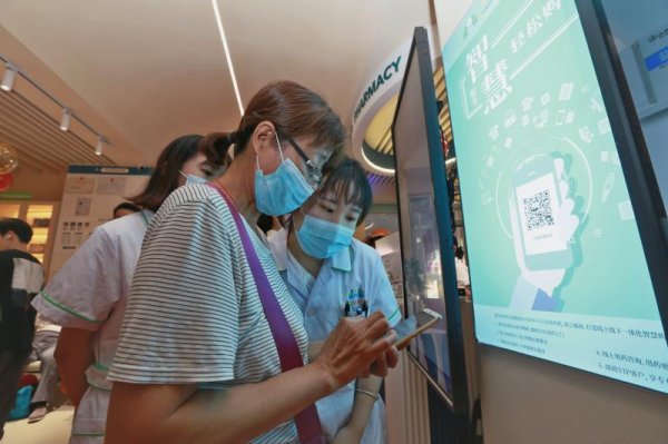 市民驻足观看智慧药房