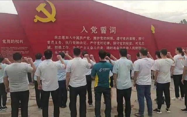 党员在和阳广场重温入党誓词,党员在和阳广场参观主题党建主题公园。周丽娟 摄