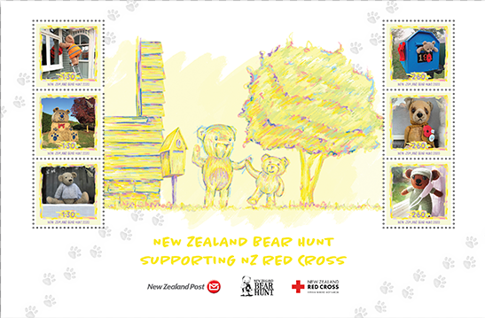 5月20日新西兰邮政发行一套六枚《狩猎泰迪熊》邮票,乍一听这名称和抗疫毫无关系,实则关系密切。新西兰四月疫情封锁期间,人们在紧张的日子里通过把泰迪熊放在家里靠窗的地方或其他创意场所来放松心情,参与到为孩子们创造的神奇体验中。新西兰邮政则号召全国民众拍下自己独创的泰迪熊照片并配上一个故事,在疫情趋缓后选定并发行了一组6枚邮票,面值分别为三枚1.3新元和三枚2.6新元。小全张售价14.7新元,其中3新元将用于新西兰红十字会。该票销售期一年,现已售罄。