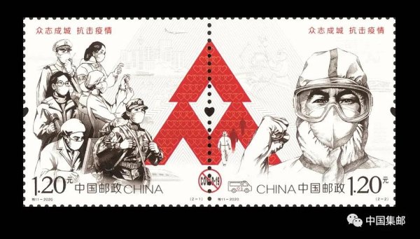 2020年5月11日,中国邮政特别发行《众志成城 抗击疫情》邮票一套2枚,并专门制作首日封、邮折赠送抗击疫情一线的医务工作者。中国邮政捐赠邮票和邮品收入共计4370万元用于抗击疫情工作,其中向中国红十字会总会捐款2800万元,向奋战在抗击疫情一线的医务工作者捐赠1500万元的定制邮折。